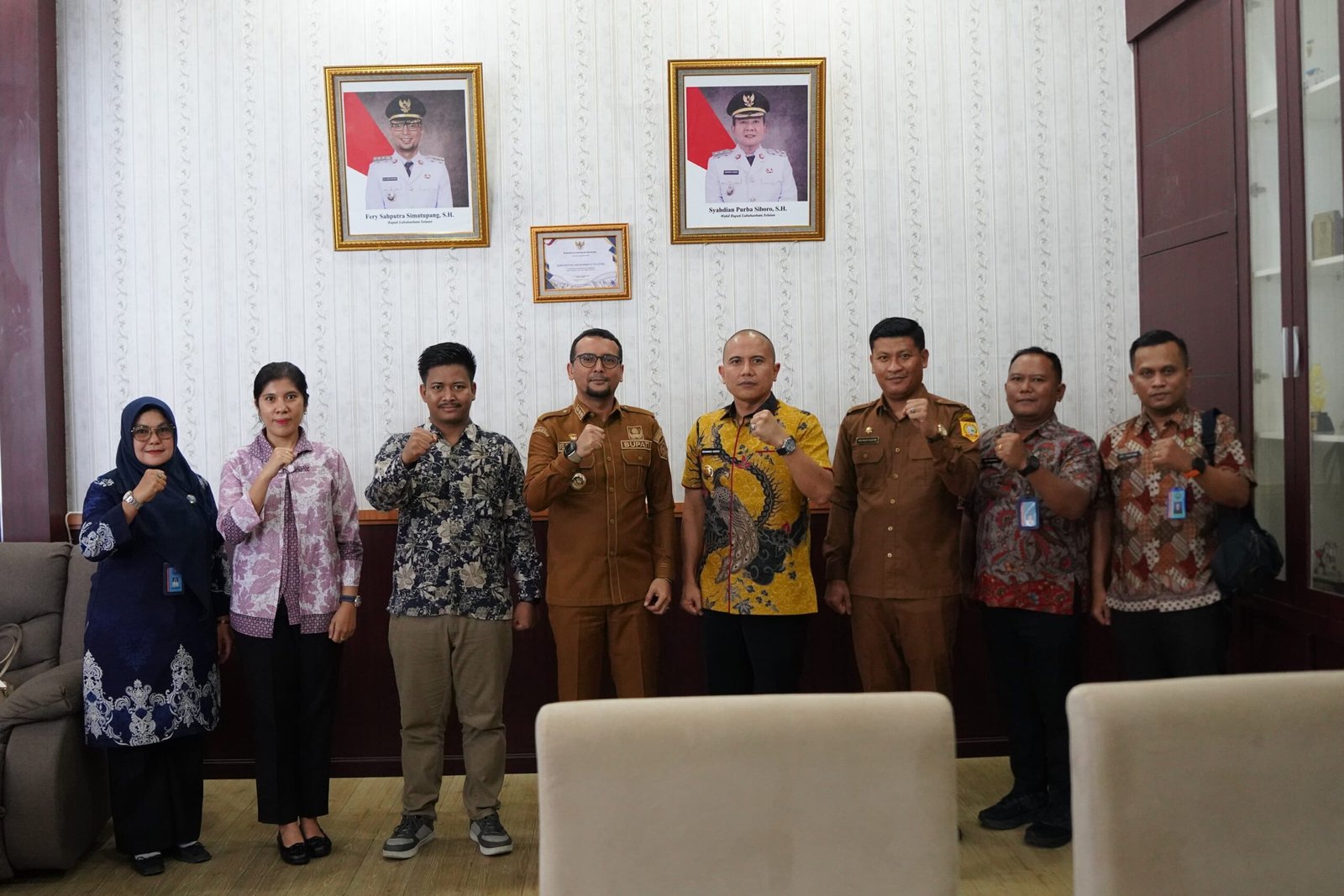 Bupati Labuhanbatu Selatan (Labusel), Fery Sahputra Simatupang, menerima kunjungan silaturahmi Kepala Badan Narkotika Nasional (BNN) Kabupaten Labuhanbatu Utara, Muhammad Hendro, di ruang kerja Bupati, Sosooan ,Kecamatan Kota Pinang ,Kabupaten Labuhanbatu Selatan ,Provinsi Sumatera Utara ,Selasa ,3/3/2026 .